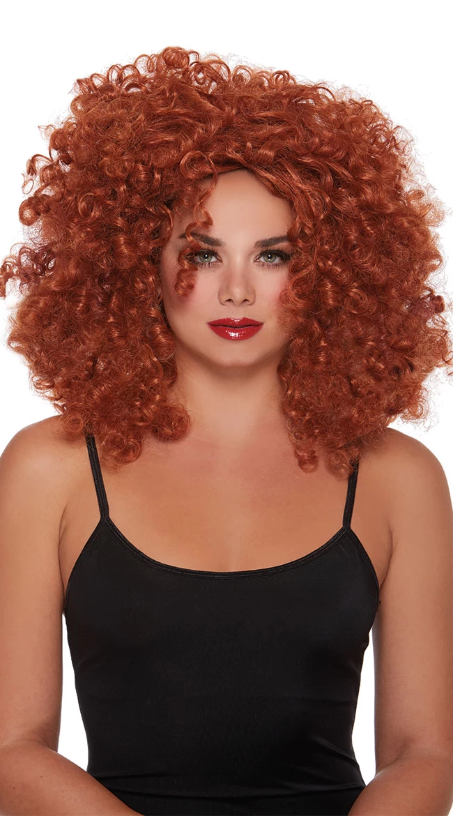 Your hair will match your larger-than-life personality in this big volume wig featuring natural-looking auburn kinky curls in a long afro style. (Wig only)