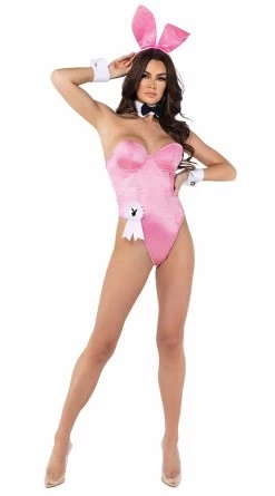 You’re looking best in show! Class it up in this Playboy officially licensed Elegant Bunny costume featuring a sophisticated satin bodysuit with molded underwire cups, a back zipper closure, a white puff tail, a collar and neck tie with matching cuffs, a winner’s badge, and a bunny ears headpiece. (Shoes not included.)