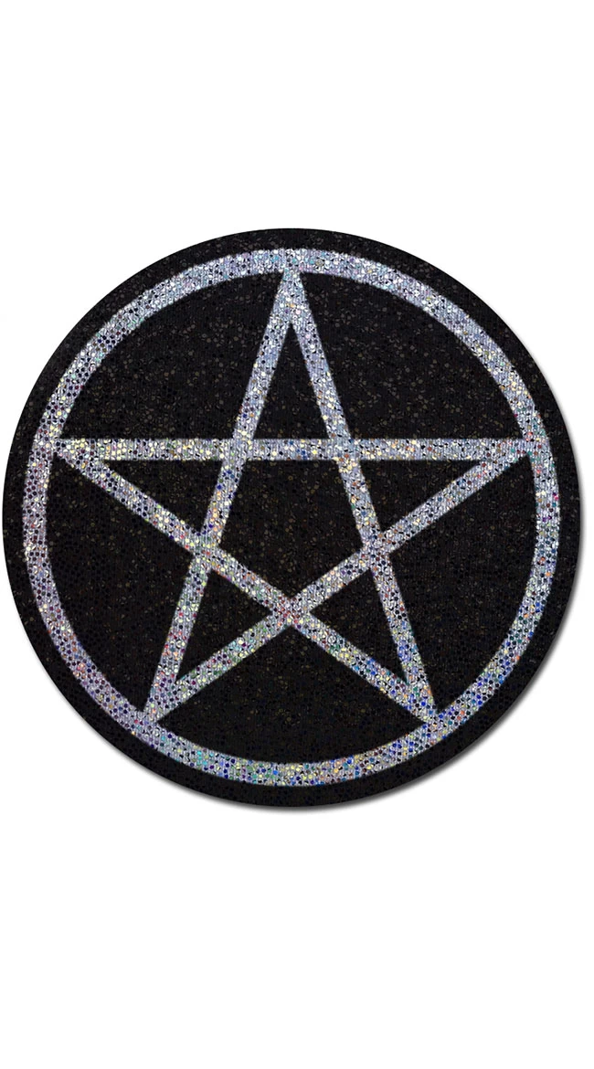 Look supernaturally sexy in these round glittering pasties featuring a silver pentagram design, and a latex-free, medical-grade, waterproof adhesive that will stay securely in place until gently removed.