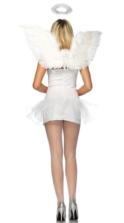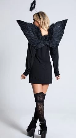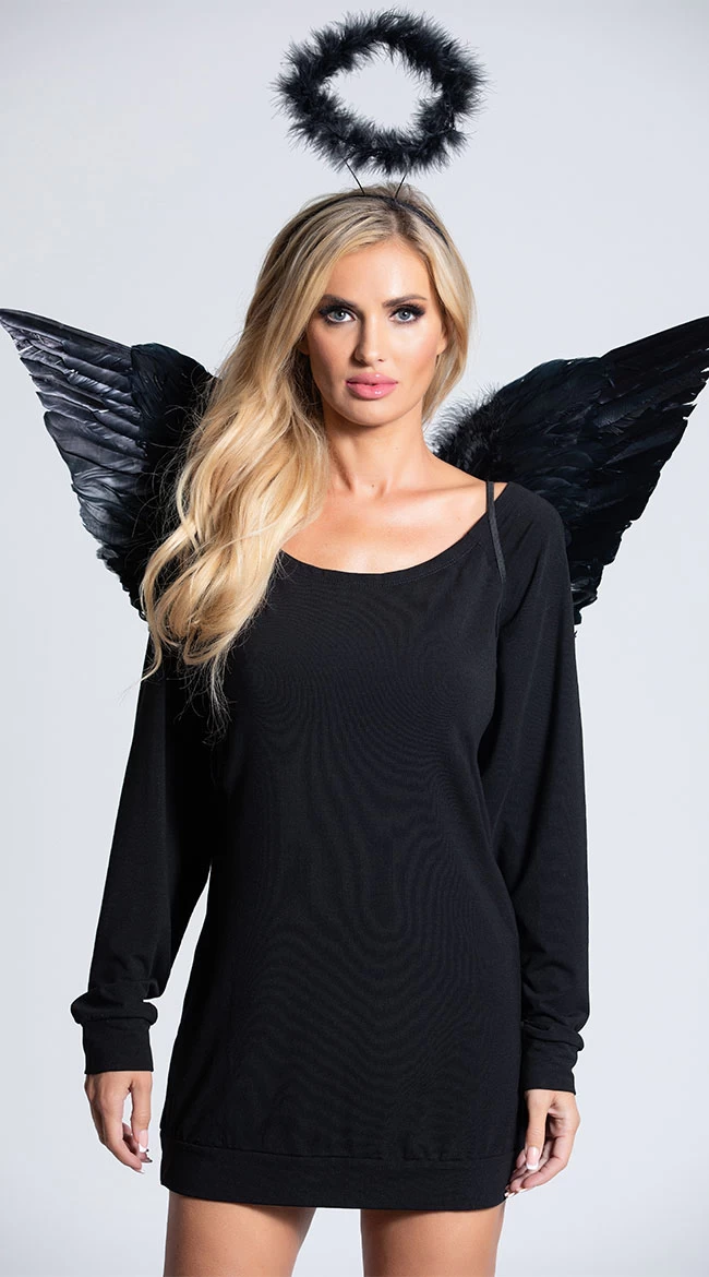 Add a twist of devious, angelic style to any outfit with this accessory pack.Includes wings and Marabou halo. (Dress and thigh high stockings not included.)