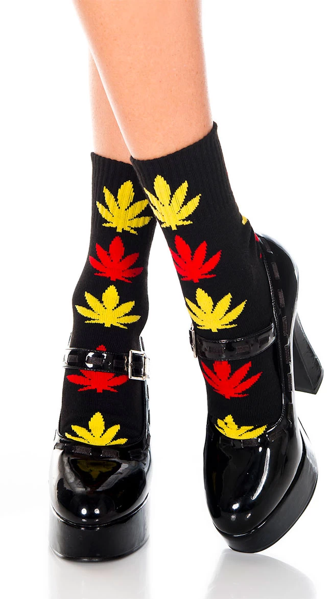 Make a statement in these cute ankle socks featuring multiple leaf decals!