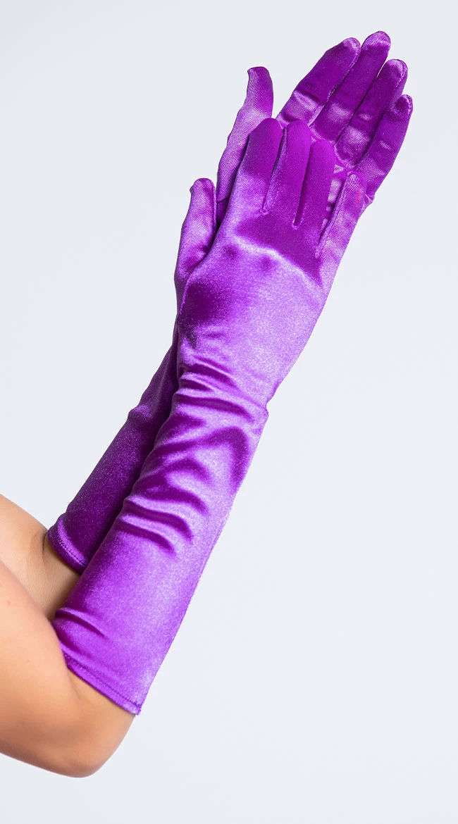 Basic satin costume gloves. Includes gloves only. (Includes a set of 2 gloves)