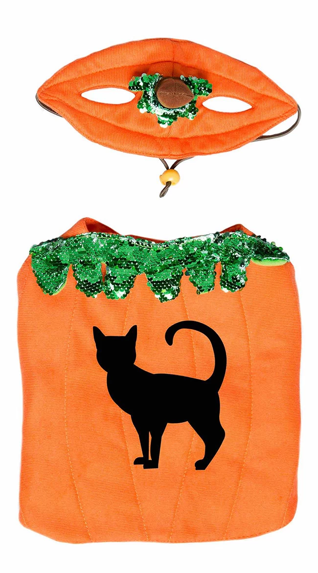 Trick or treat! Create a custom pumpkin, no carving or mess involved. This Pumpkin Pet Harness costume features an orange non-slip harness, attachable velcro pieces to mix and match your own jack-o-lantern design, and an adjustable pumpkin top hat. This costume fits any pet, small or large!