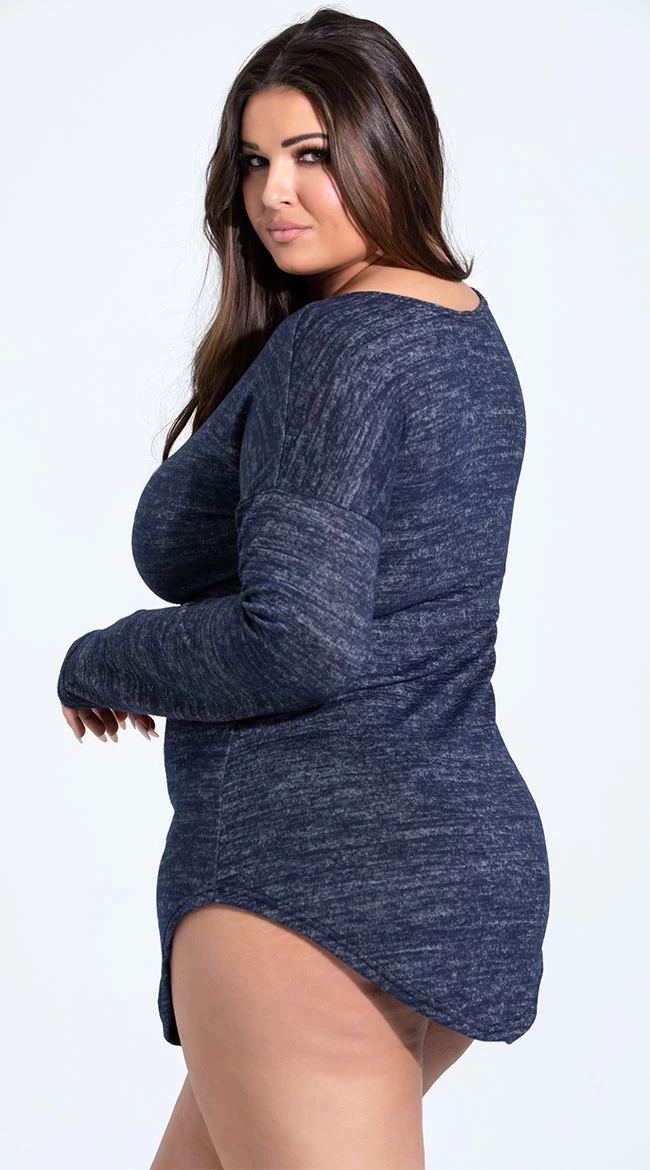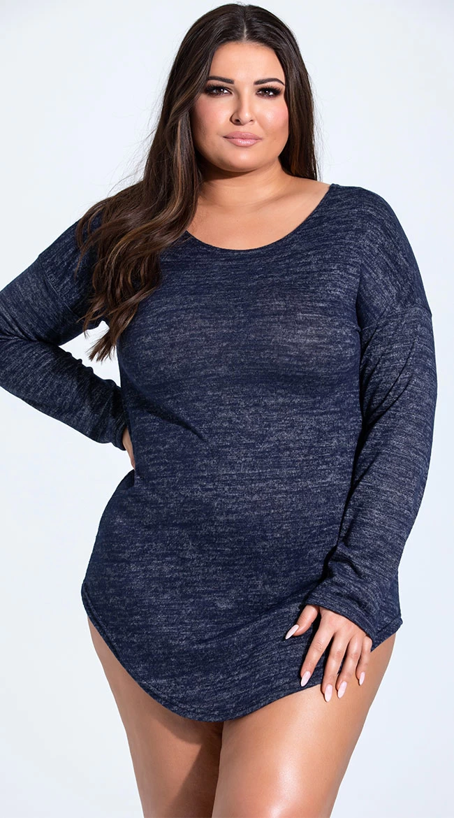 Lounge around with your love in this cozy plus size grey pajama shirt featuring a round neckline, long sleeves, a loose and comfortable fit, and a rounded hem with side vents.