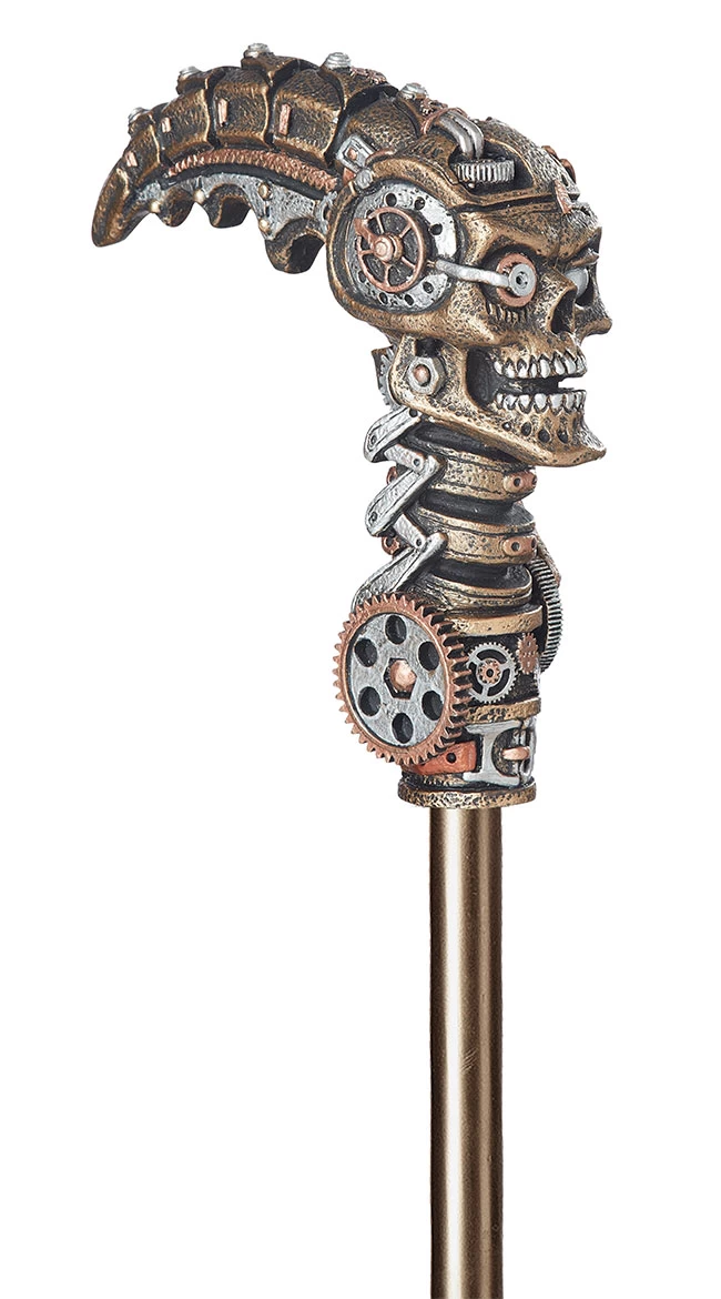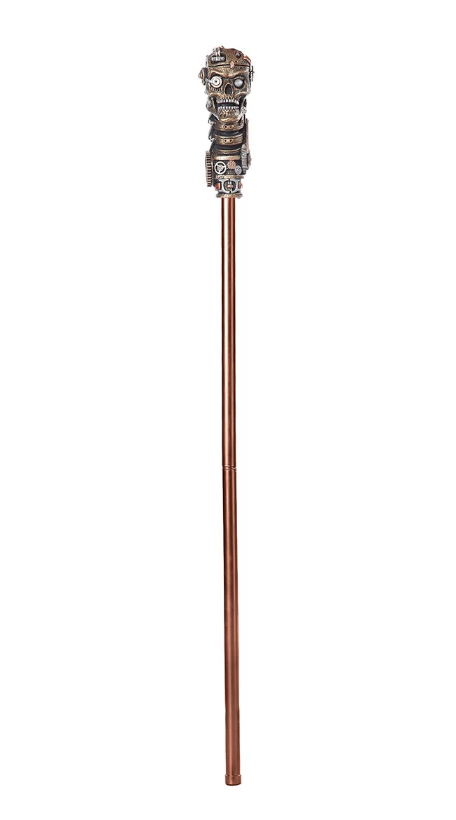 Finish off your steampunk costume with this copper cane featuring an intricate skull handle.