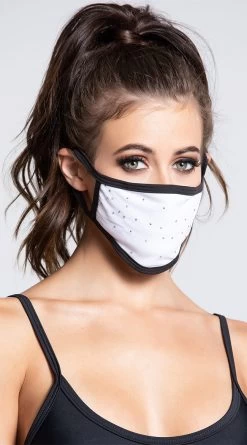 Bring on the bling with this fashionable face mask. Whether it’s to add a little bedazzle to your rave look, or just simply go bold with the current trend, you’re sure to feel cozy and cute in this statement mask. It features a soft fabric front with tiny rhinestone studded accents, and two comfortable ear loops to sit securely on your face. In three color options: black, red and white, you’re sure to find one you want to bring home. (Face glitter and earrings not included.)