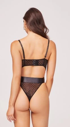 Dress up for the night in this exclusive teddy featuring sheer mesh underwire cups, adjustable spaghetti straps, a sheer bodice, a hook and eye back closure, a satin waistband with a front tie closure, an open back panel, a high cut leg, an allover fishnet design, and a thong cut back.
